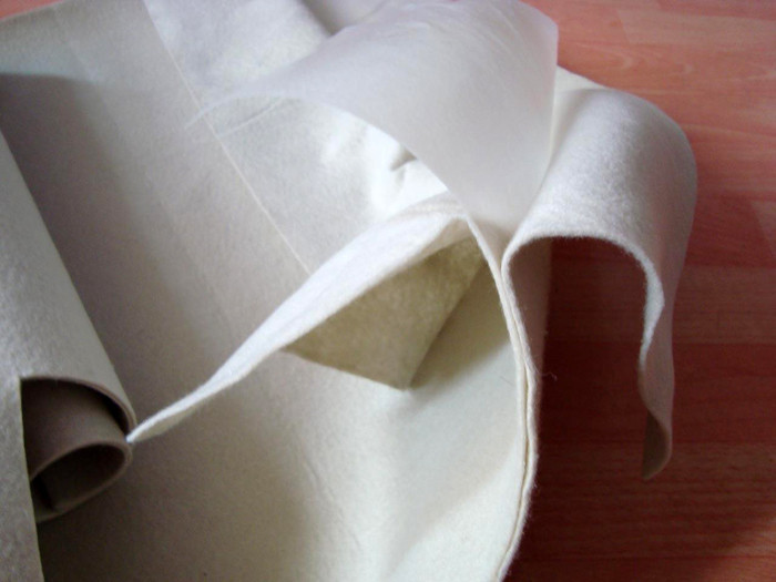 復合土工膜是在薄膜的一側或兩側經過烘箱遠紅外加熱,把土工布和土工膜經導輥壓到一起形成復合土工膜。隨著生產工藝的提高,還有一種流延法做復合土工膜的工藝。其形式有一布一膜、二布一膜、兩膜一布等。
